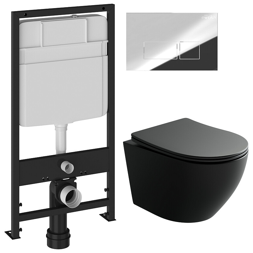 Унитаз Ceramicanova Uno Rimless CN11001MB с инсталляцией Ewrika ProLT 0026-2020