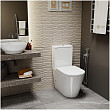 Безободковый напольный унитаз-компакт с антибактериальным сиденьем с плавным закрыванием и легкосъемным механизмом.