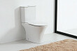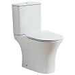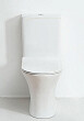 Фаянсовый безободковый напольный унитаз-компакт с ультратонким сиденьем с механизмом плавного опускания крышки.