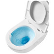 Безободковый, подвесной унитаз с ультратонким, антибактериальным сиденьем с плавным закрыванием и легкосъемным механизмом, петли хром.
