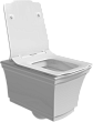Фаянсовый подвесной унитаз с ультратонким сиденьем с механизмом плавного опускания крышки.