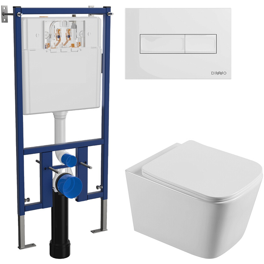 Унитаз подвесной Agger AT04100 с инсталляцией Diwo 4501, с кнопкой белой 7320