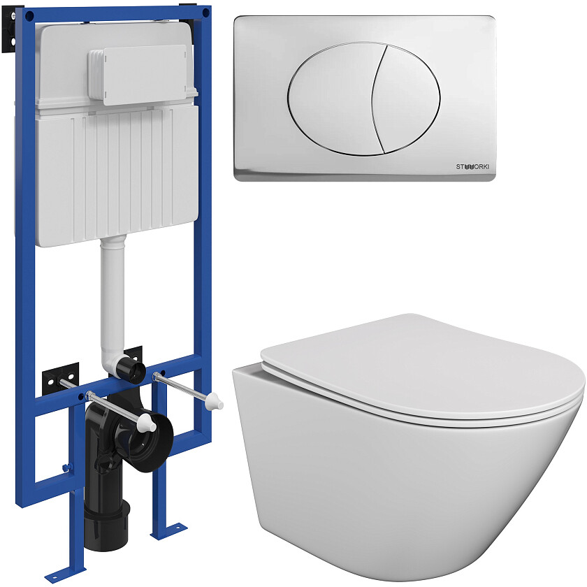 Унитаз подвесной "Левангер" S07401WH с инсталляцией Stworki 510162 и кнопкой 230822