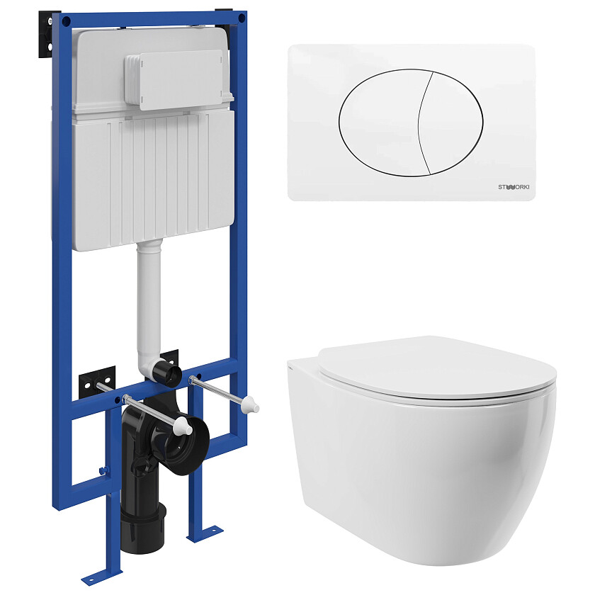Унитаз подвесной "Муле" HDC510NWH с инсталляцией Stworki 510162 и кнопкой 230824 - изображение 1