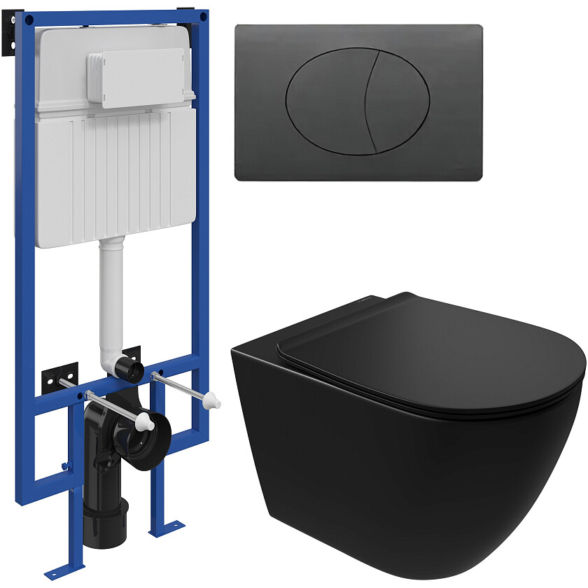 Комплект: Унитаз подвесной STWORKI Готланд S13401BK безободковый, с микролифтом, черный + Инсталляция + Кнопка 230858 черный матовый