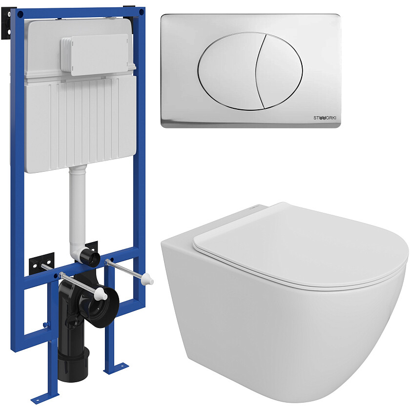 Унитаз подвесной Stworki "Готланд" S13401WH с инсталляцией 510162 и кнопкой 230822