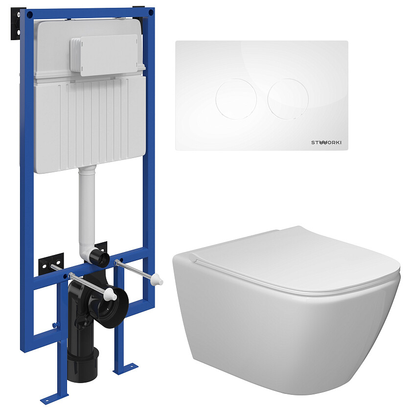 Унитаз подвесной Stworki "Карлстад" 5610 с инсталляцией 510162, с кнопкой 500470