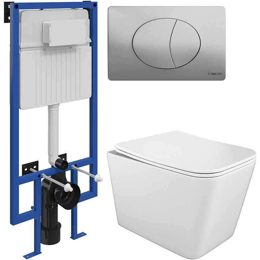 Унитаз подвесной Stworki "Молде" S23401WH с инсталляцией 510162 и кнопкой 230823