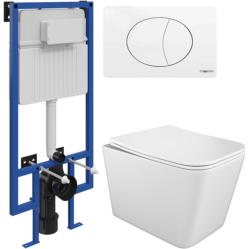 Унитаз подвесной Stworki "Молде" S23401WH с инсталляцией 510162 и кнопкой 230824