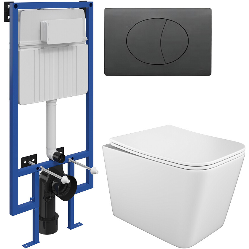 Комплект: Унитаз подвесной STWORKI Молде S23401WH безободковый, с микролифтом, глянцевый белый + Инсталляция + Кнопка 230858 черный матовый