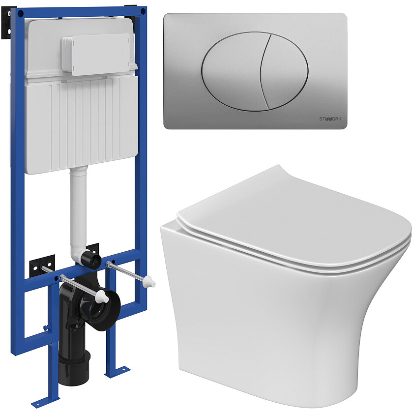 Унитаз подвесной Stworki "Олланд" S01401WH с инсталляцией 510162 и кнопкой 230823