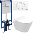 Комплект: Унитаз подвесной STWORKI Вестфолл S08401WH безободковый, с микролифтом, глянцевый белый, смыв торнадо + Инсталляция + Кнопка 230824 белая