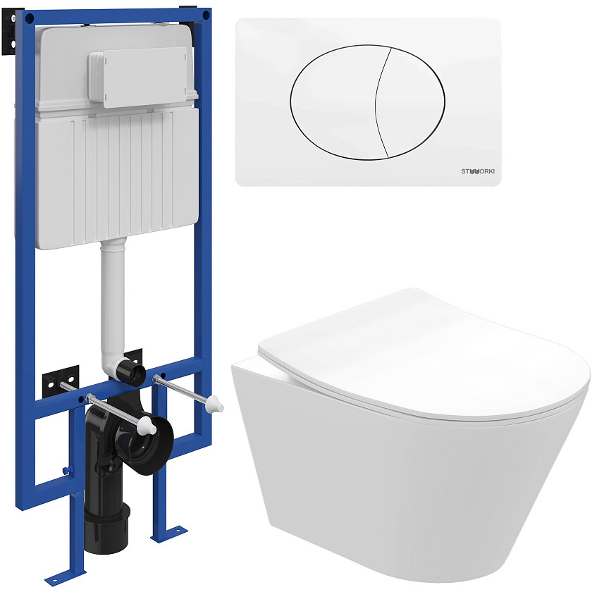 Унитаз подвесной Stworki "Вестфолл" S08401WH с инсталляцией 510162 и кнопкой 230824 - изображение 1