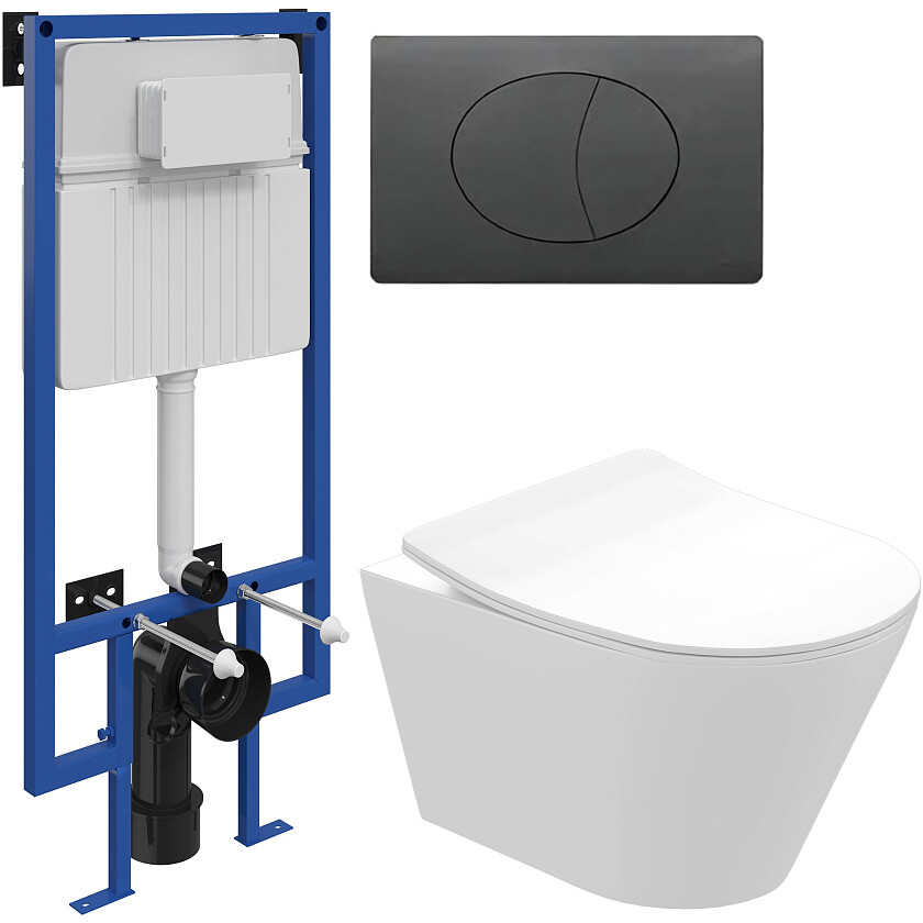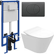 Комплект: Унитаз подвесной STWORKI Вестфолл S08401WH безободковый, с микролифтом, глянцевый белый, смыв торнадо + Инсталляция + Кнопка 230858 черный матовый