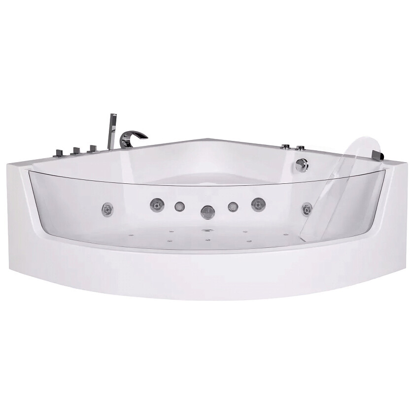 Акриловая гидромассажная ванна (джакузи) Ceruttispa C-401А (1500х1500х580) угловая, 4 гидромассажные форсунки, 12 аэромассажных форсунок, смеситель, подголовник, хромотерапия