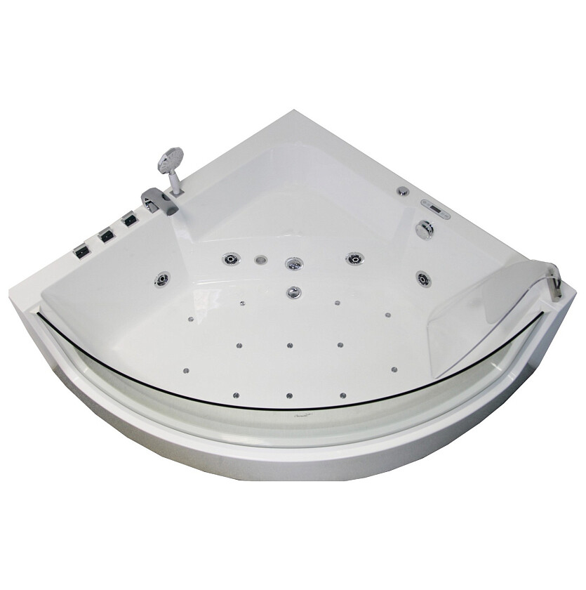 Акриловая гидромассажная ванна (джакузи) Cerutti SPA C-401 (1500х1500х580) угловая, 4 гидромассажные форсунки, 12 аэромассажных форсунок, смеситель, пульт, подголовник, хромотерапия, с датчиком сухого пуска.