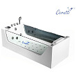 Ванна оснащена подлокотниками и пологой стенкой на противоположном конце от слива, так что в ней действительно комфортно лежать как в одиночку, так и вдвоем.