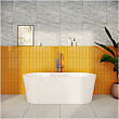 Угловая асимметричная ванна Doris выполнена в современном стиле и имеет удобную и стильную форму со скошенным краем с другой стороны от слива.