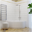 Угловая асимметричная ванна Doris выполнена в современном стиле и имеет удобную и стильную форму со скошенным краем с другой стороны от слива.