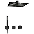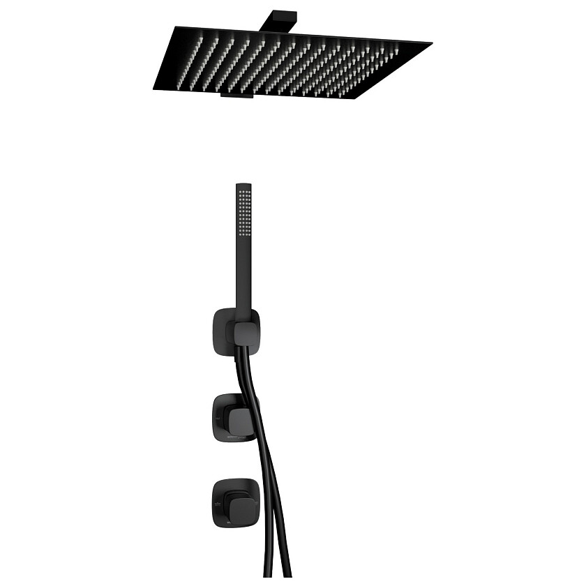 Создание различных конфигураций встраиваемых наборов для ванной комнаты и туалета. Современное и удобное решение в стиле минимализма. Встраиваемый комплект для душа с верхней душевой насадкой и лейкой выполнен из высококачественной латуни. Покрытие – черный Soft-touch.