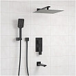 Создание различных конфигураций встраиваемых наборов для ванной комнаты и туалета. Современное и удобное решение в стиле минимализма. Встраиваемый комплект для ванны с верхней насадкой, лейкой и изливом выполнен из высококачественной латуни. Покрытие – черный Soft-touch.